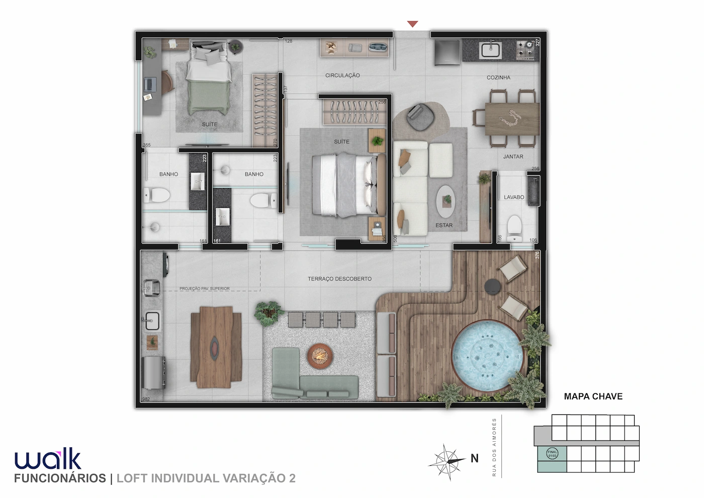 O Walk possui espaços fluidos e cheios de estilo com toda infraestrutura e comodidade que conectam o morador a tudo que é importante. Um empreendimento de alto padrão que transborda inovação e conforto, com localização estratégica e design sofisticado.